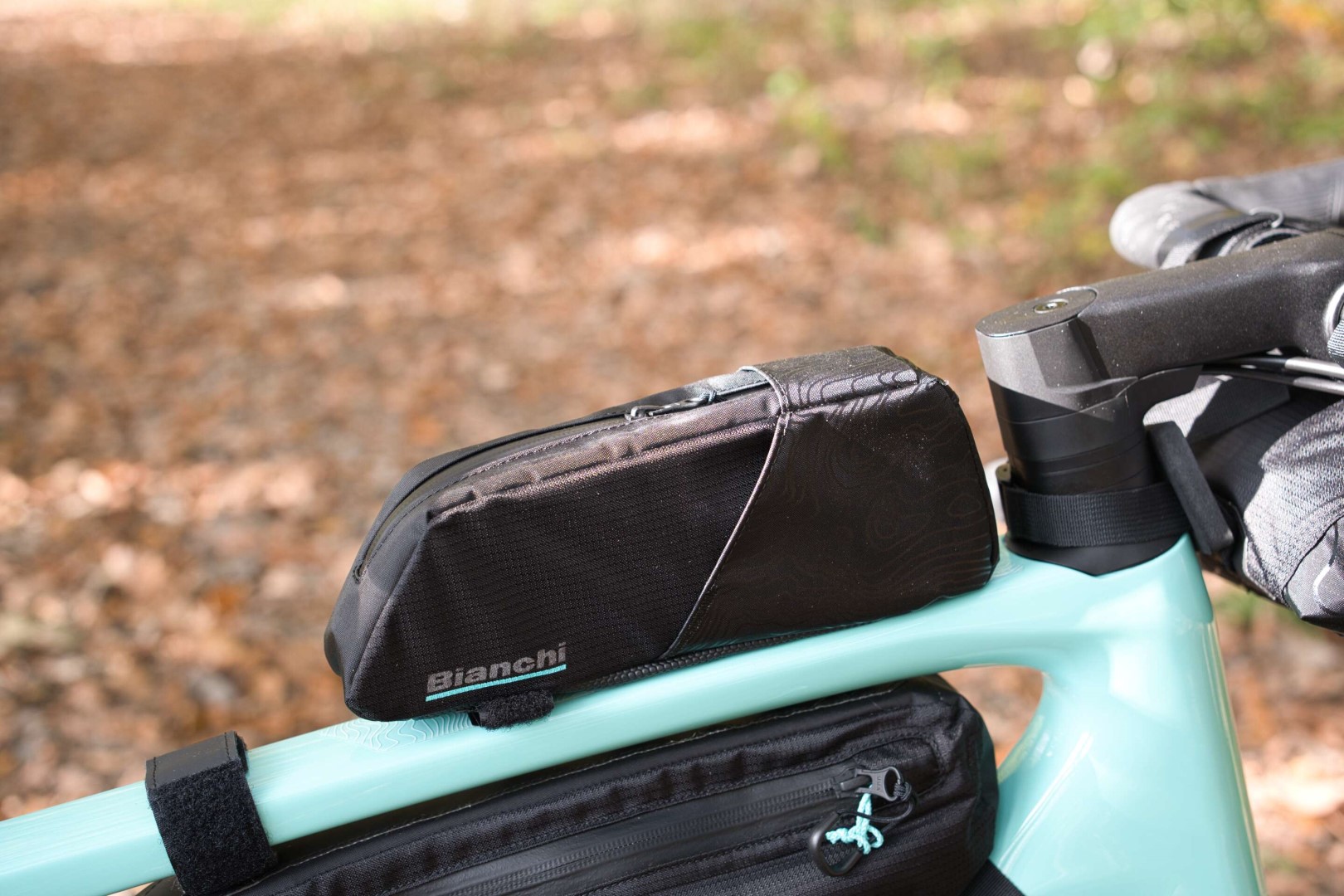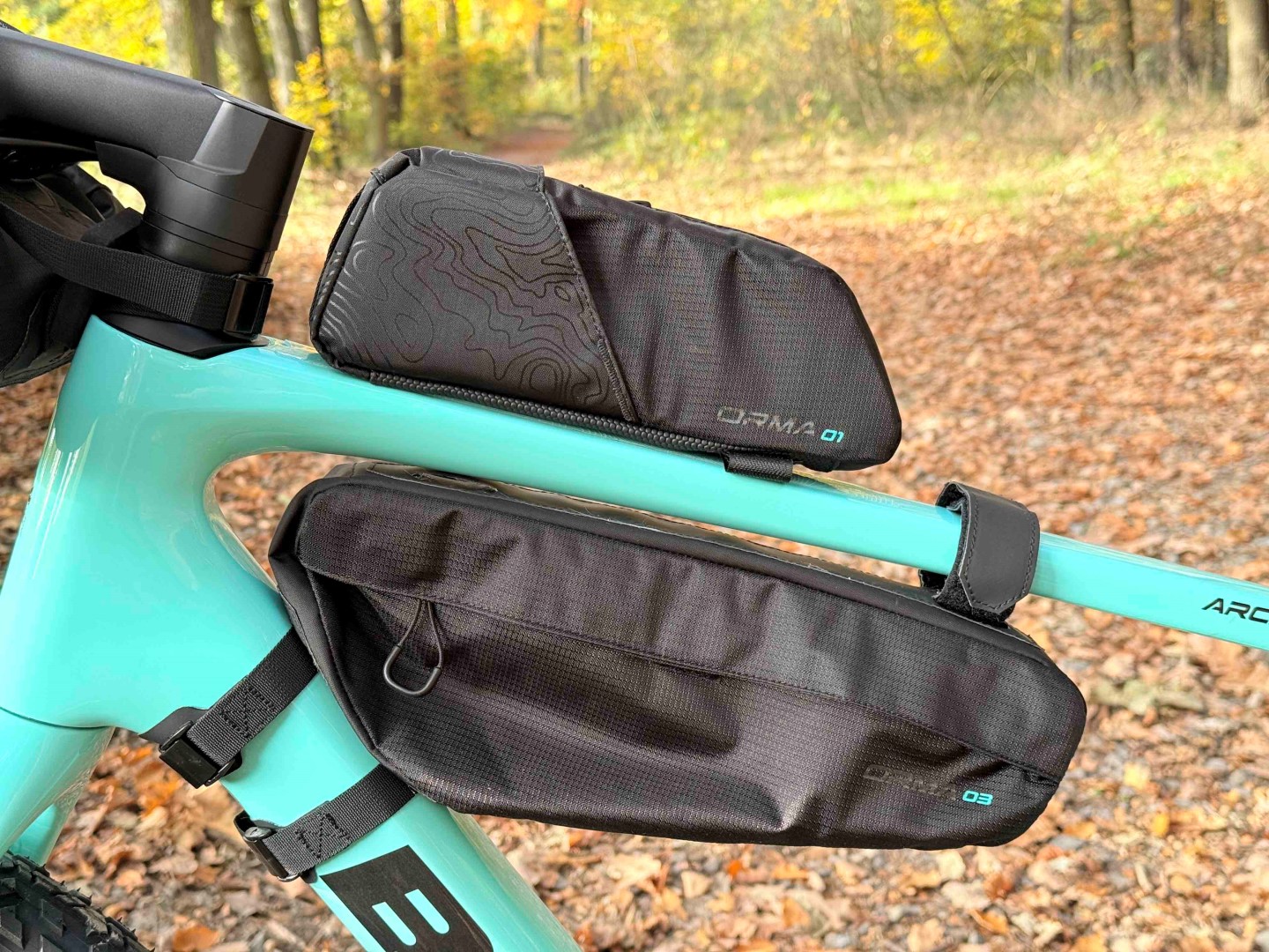 Brašna na horní rámovou trubku k sedlovce. Zip s vodotěsnou úpravou. Možnost uchycení páskami nebo do rámu.